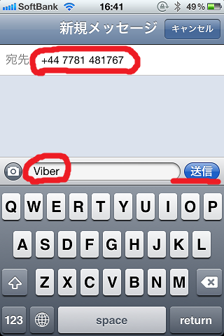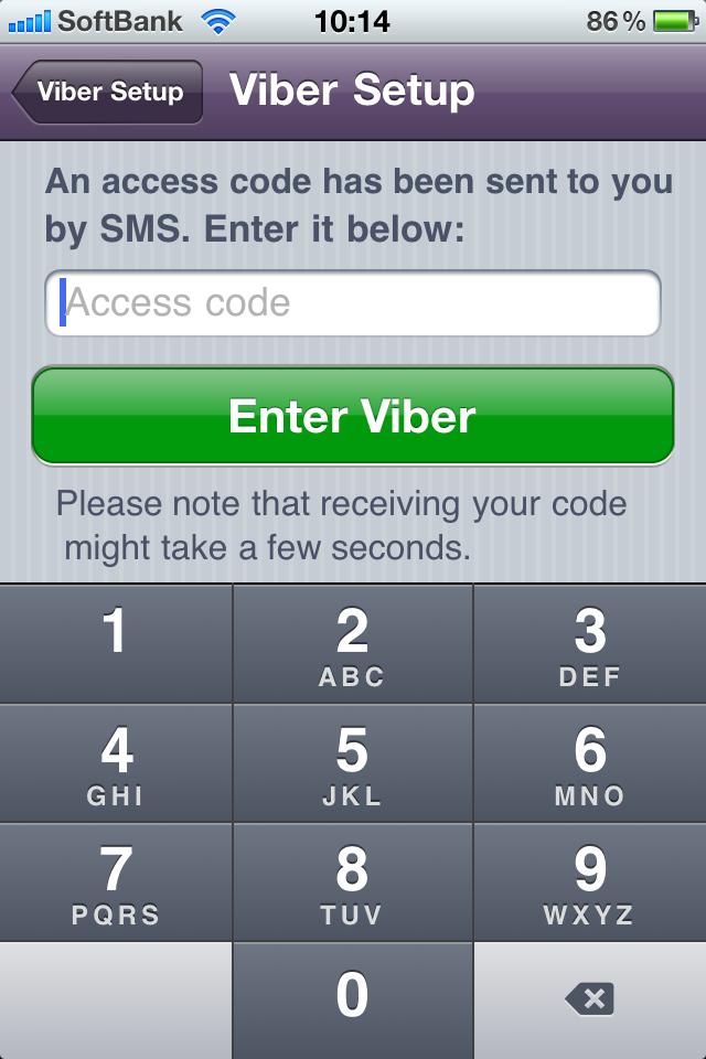 ViberでアクセスコードがSMSで届かない場合に、コード登録画面の右上にHELPって