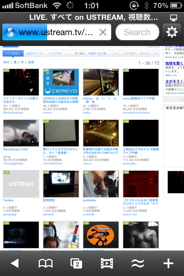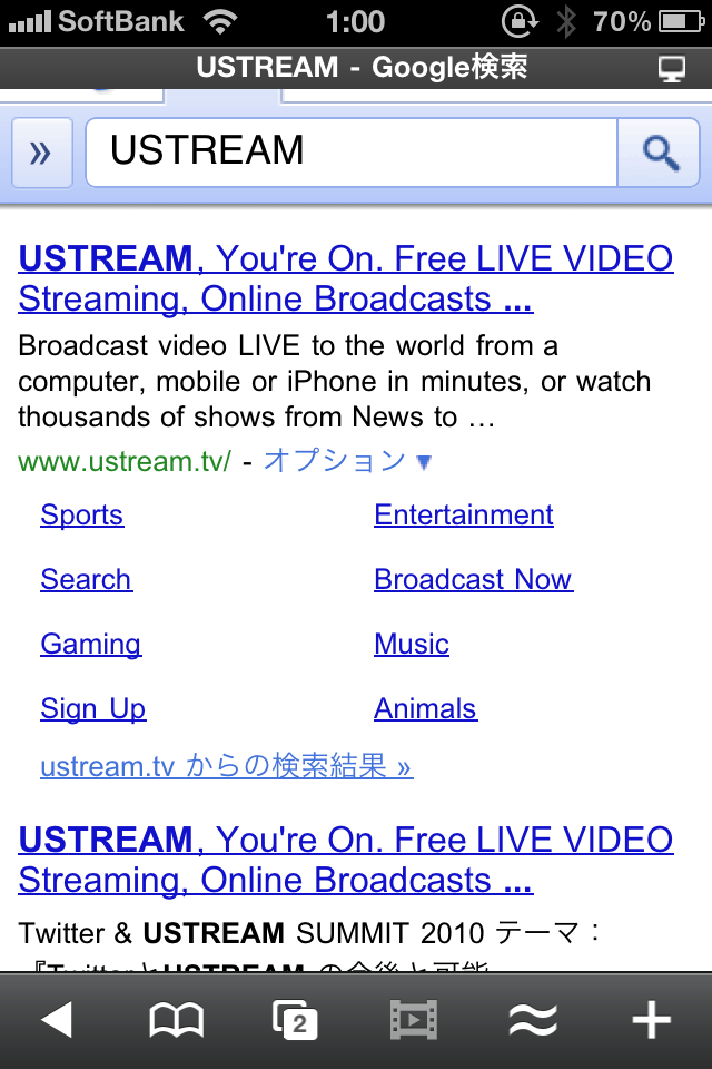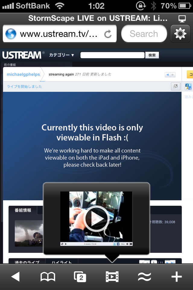これでUSTREAMもiPhoneで見れちゃいます。